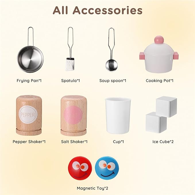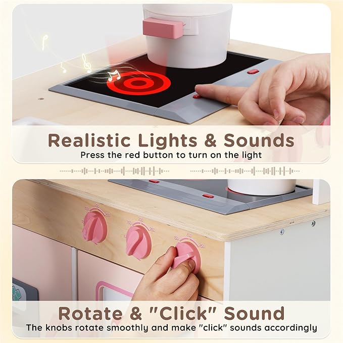 • Perfect Gift: Ideal for birthdays, holidays, or any special occasion, this wooden play kitchen set makes a wonderful gift for boys and girls who love to cook and play pretend