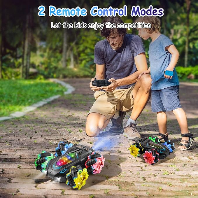- 【Dual Remote Control Mode】The remote control stunt car can be switched between gesture sensing control and 2.4G remote control. The remote control mode is suitable for beginners, experienced veterans can experience the advanced mode with the gesture controller, which offers more flexibility and possibilities.