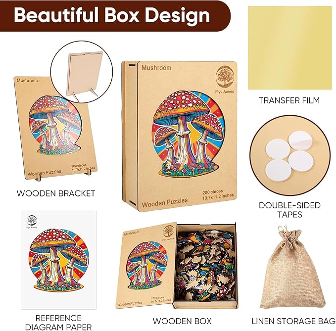 Mushroom Wooden Puzzles for Adults, 500 Piece Unique Shaped Wood Jigsaw Puzzles for Adults and Kids, Fun Challenging Puzzles Family Game Gift, 15.9'' x 16.7''