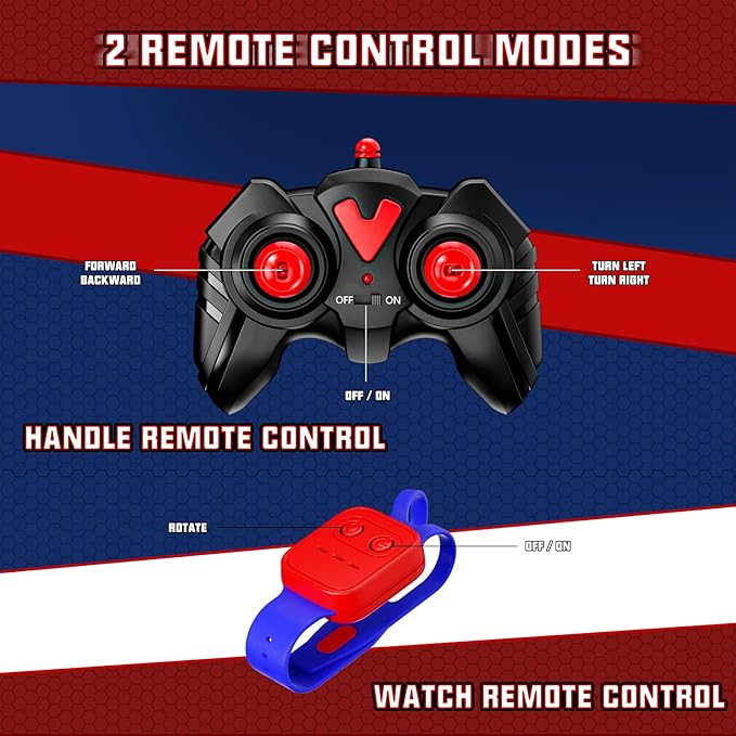 - Two Remote Control Mode: Remote control uses 2.4ghz transmission technology, which is simpler and more sensitive to operate, and can be controlled from a long distance. In addition to the ordinary remote control, this remote control car is also equipped with a gesture control watch. Both remote controls are equipped with suitable batteries and can be played directly after unpacking. Put on the remote control watch and move your fingers, and the car will move with it!!!