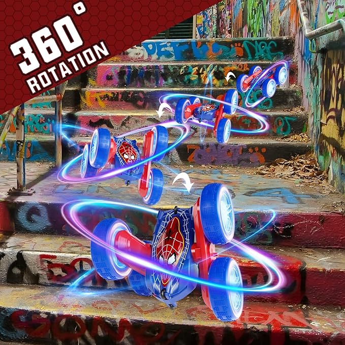 - New Upgraded Stunt RC Car with Lights: Not only go forward, backward, turn left, turn right, but also 360-degree roll and flip to drift in all directions, giving your children a different gaming experience. This durable remote control car toy is specially designed to be driven on both sides to easily cross obstacles. At the same time, this function can also turn the toy car into a dancing car instantly by suddenly moving forward and backward. Children will go crazy for it.