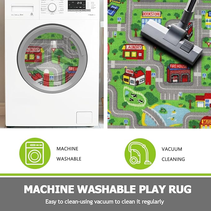 - 【Machine Washable Round City Map Rug】:① Easy to clean,using vacuum to clean it regularly or machine washing to clean mat completely. ②Perfect for children's bedroom,playroom,nursery room,classroom,living room,elementary school,preschool,daycare,kindergarten etc.