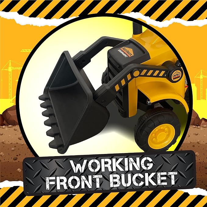 • REALISTIC CONSTRUCTION TRUCK DESIGN: Frontloader ride-on toy. Perfect for little builders ages 18 – 36 months, this fun ride is ready for action on the sidewalk or driveway, supporting up to 44 lbs.
