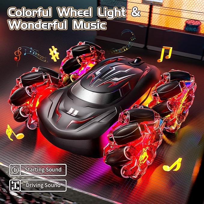 - 【Two Control Methods】Uregoio gesture sensing remote control stunt car can be controlled by the handle remote control or the sensing watch. You can control the stunt car to move forward or backward in the direction you want. You can also control the switch of lights and the playing of music, and you can start the automatic demonstration with one button (There are 3 demo modes, each corresponding to a piece of music). The rich functions will definitely bring an excellent gaming experience to your children.
