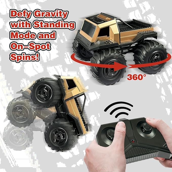 • 2.4G Remote Control Amphibious Pickup Truck - This remote control pickup truck uses 2.4G technology for long-range, interference-free fun. With adjustable speed settings, you can adapt to different driving conditions and enjoy unique features like standing up and spinning in place.