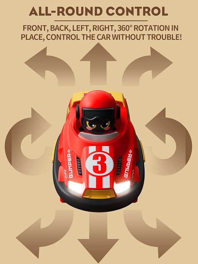 - Remote control car for toddlers, equipped with headlights and taillights, with 3 songs built-in. The rc bumper cars has a smooth exterior, clear printed patterns, and bright colors. Its rubber tires are tough, elastic, wear-resistant, and have shock-absorbing effects.