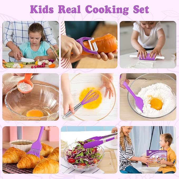 - 【KIDS COOKING SETS REAL】We've prepared a cooking and baking cookbook that's easy for your little chef to follow, just follow the instructions. Your little ones will love to cook & bake and will learn to explore different flavors as they proudly whip up their own creations. Cooking together is a great way to build self-confidence while spending quality time