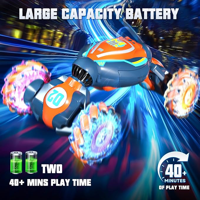 - TRI-CONTROL INNOVATION: Master every move with 3 intuitive systems: 2.4GHz precision remote, wearable wristwatch controller, and breakthrough contactless gesture tech. Spark wonder as kids activate spins/drifts with magic hand motions - no touch required!