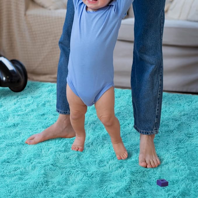 Super Fluffy Area Rug for Bedroom, Modern Shag Blue Area Rugs, Soft Plush Small Carpet for Kids,Girls Boys and Teens Decorations for Living Room Dorm Nursery Classroom, 9x12 Feet