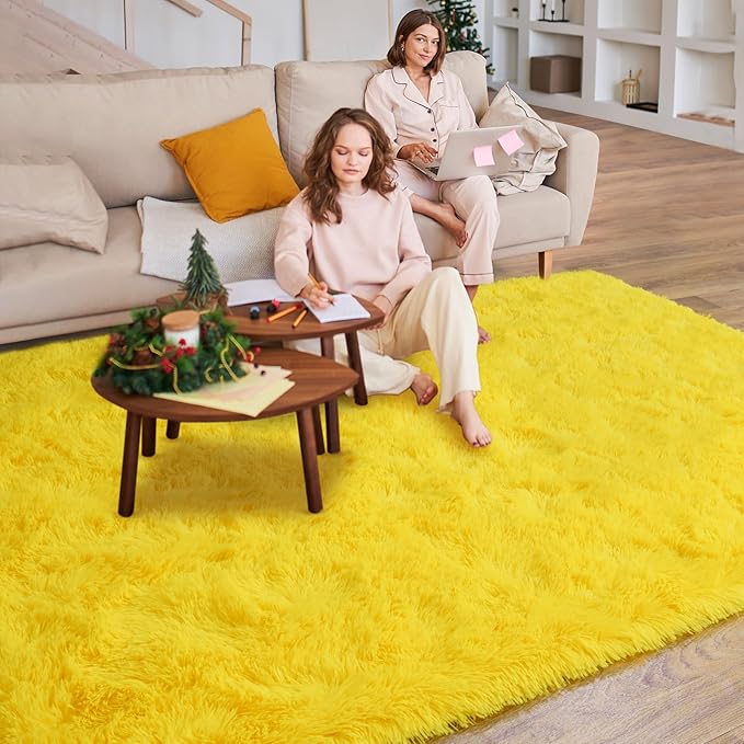 Super Fluffy Area Rug for Bedroom, Modern Shag Yellow Area Rugs, Soft Plush Small Carpet for Kids,Girls Boys and Teens Decorations for Living Room Dorm Nursery Classroom, 5x7 Feet