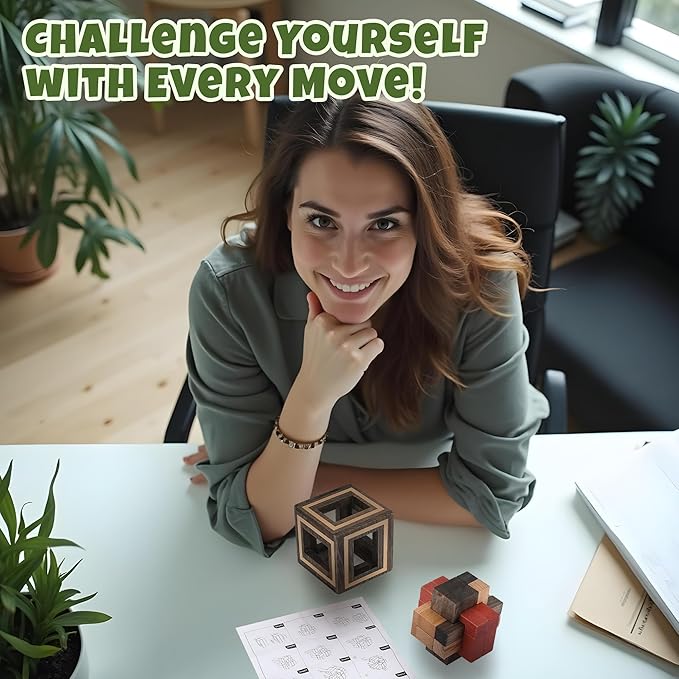 Sharp Brain Zone Wooden Brain Teaser Puzzles for Adults & Kids (Magic Box)