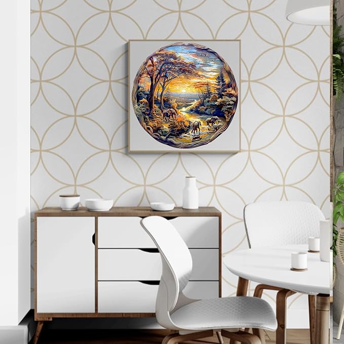- [Wooden Jigsaw Puzzles for Adults Kids] - This Elephant at sunset shaped jigsaw puzzle is made of high quality natural wood, safe and durable. The wooden puzzle is a colorful puzzle with clear and vibrant images that won't fade over time. Advanced laser cutting technology gives the adult puzzles very smooth edges and a very comfortable feel, protecting your hands from injury.