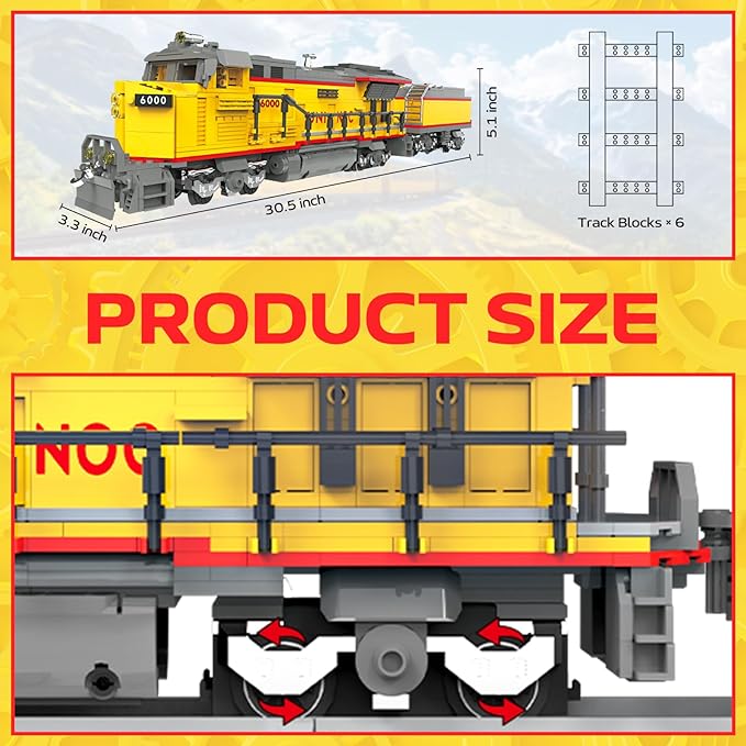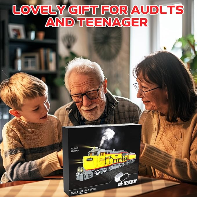 AC6000 Classic Steam Train Building Blocks Set - STEM Model Trains Sets for Boys 8-14 and Adults - Fun and Creative Freight Train Building Toy for Birthday, Halloween, Chrismas, Valentine (1162 pcs