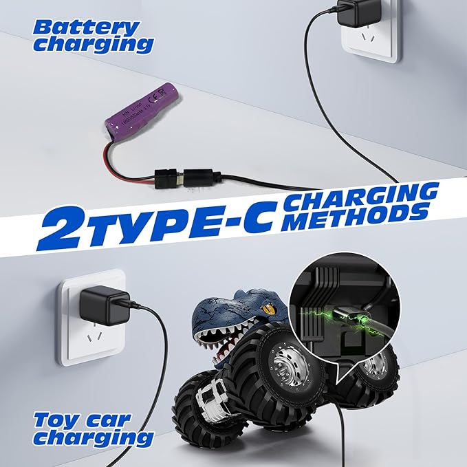 - Convenient Type-C Charging: The remote control car offers two charging methods. You can directly use the Type-C interface to charge the vehicle without disassembly, or charge the battery separately. This flexible charging system can meet children's gaming time needs of more than 30 minutes.