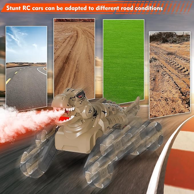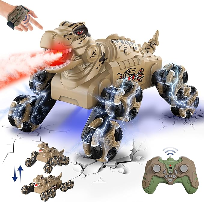 • 【Cool skills】: Our hand controlled RC car has light,Realistic dinosaur roars and cool spray , able to let children play indoors and outdoors, bring a different experience.