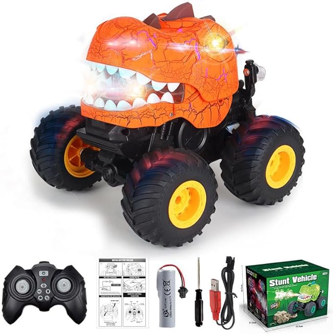 - 【Top Gift on the Wish List】 On birthdays, Christmas, or when rewarded, children squeal with delight when they receive this gift! Kids would be amazed to get a dinosaur toy, which also doubles as a high-speed remote-control stunt car, complete with flashing lights and music – You can hardly ask for more! Well packed with an excellent gift box. The best gift ideal for boys & girls age 3,4,5,6,7,8,9,10 years old!