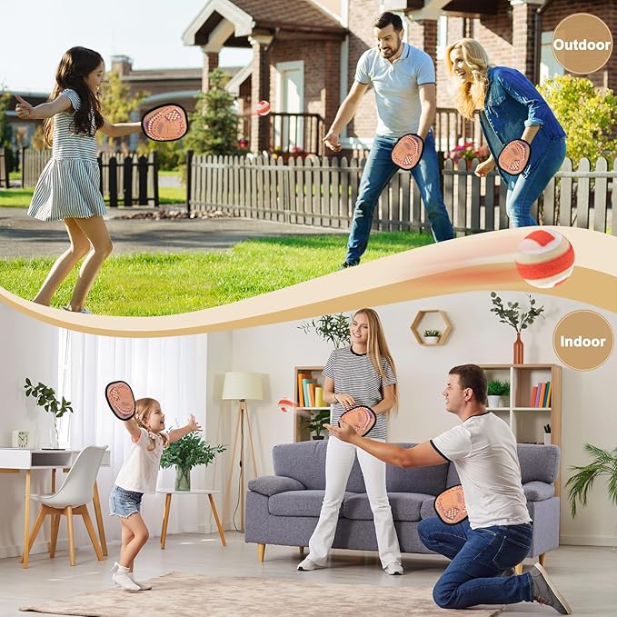 • Fun Gift: Looking for an unforgettable gift? This ball game set includes 4 paddles, 4 soft balls, and a storage bag. Perfect for birthday gifts, easter basket stuffers, easter gifts,toddler baseball gifts, toddler toys, ball toys
