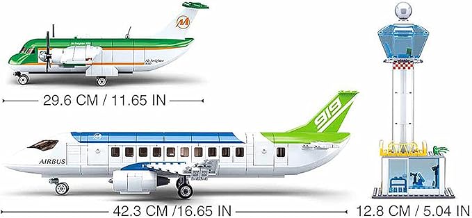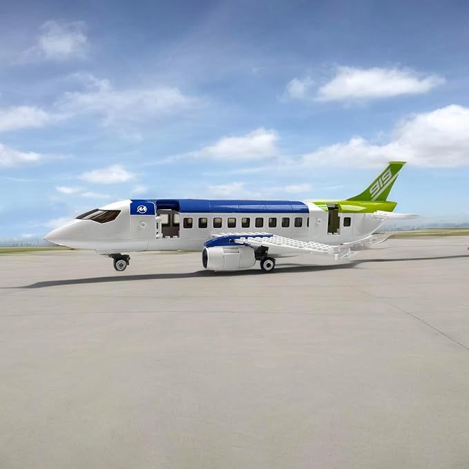 • Airplane Building Blocks Set: The aviation airport terminal building block set,with 2 big planes, a terminal and tower, a luggage tractor, and a cart. The wheels of the plane can rotate 360 ​​degrees, which can be used for sliding. The front and rear doors of the cabin can be opened. The engine fan at the bottom can also be rotated, which are close to realistic airport building block models.