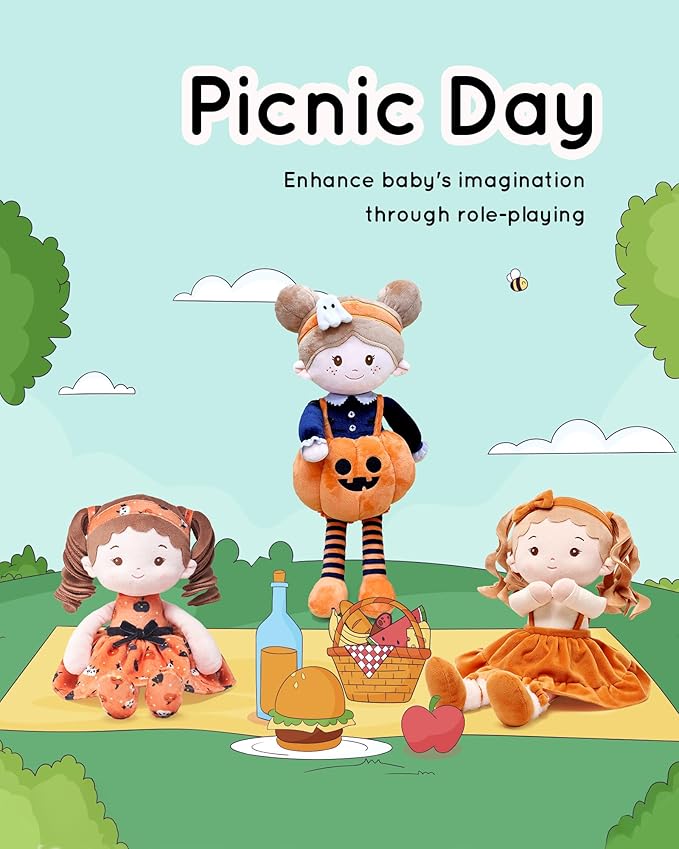 Soft Baby Doll Toys (16''), My First Baby Rag Doll for 1 Year-Old Girl Birthday Gift, Christmas Plush Toys Gift for Toddler Kids Infants-Halloween Special-Pumpkin Girl
