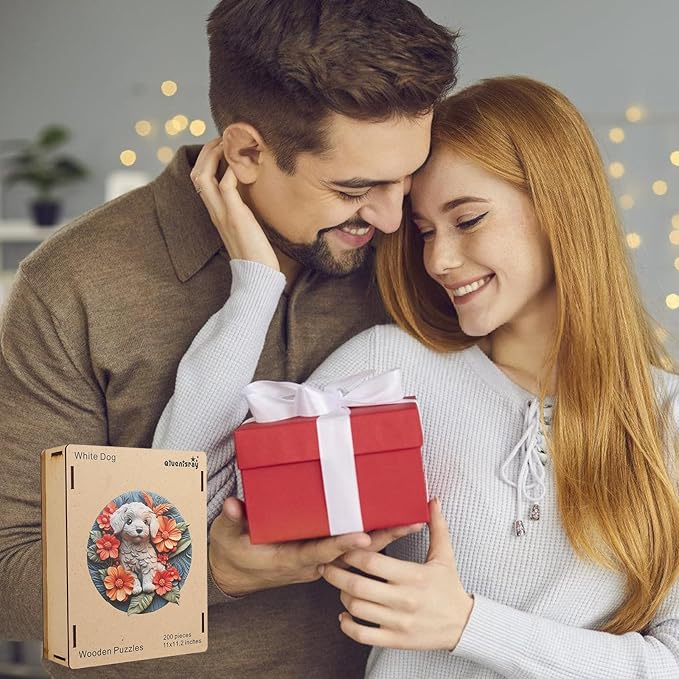 Wooden Puzzle for Adults - 3D Vision Effect White Dog Wooden Puzzle 200 Pcs Unique Shape Advanced Wooden Jigsaw Puzzle, Wood Puzzles, Challenge Wooden Jigsaw Puzzle(11.1 x 11.2 in)