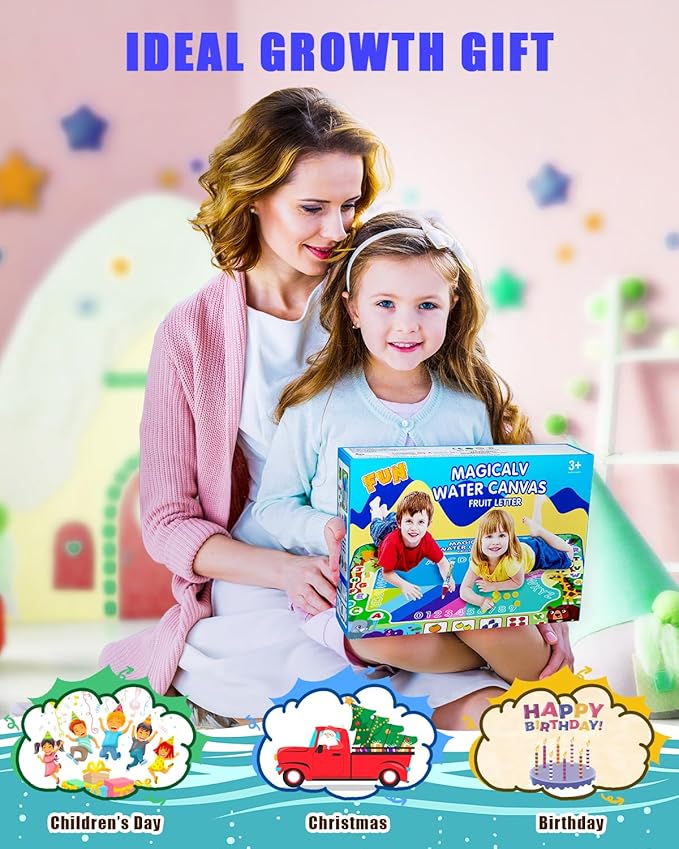 - 【Best Gift for Toddlers 3-12 Year Old】Compared with other narrow water doodle mats, our enlarged doodle mat allows your child to freely paint with friends on the table, floor or grass, and enjoy the fun of creative drawing with friends and parents. It is a great interactive toy. This 2 in 1 mess free coloring mat for toddlers is the best choice for birthday gifts, Christmas gifts or holiday gifts.