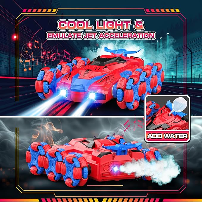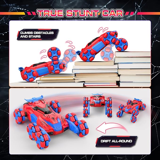 - Ideal gift for boys: Looking for a fun and practical gift? Try our remote control stunt car! This remote control car is perfect for birthdays, Halloween parties, Christmas gifts, and holidays. Your child will love this unique and super cool remote control car, making it the perfect birthday or holiday gift for kids.