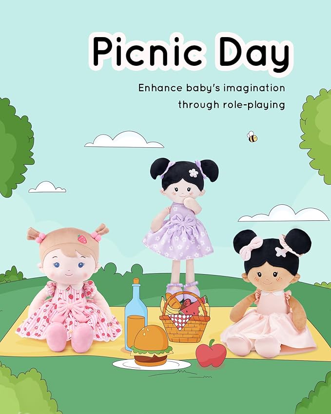 Soft Baby Doll Toys (16''), My First Baby Rag Doll for 1 Year-Old Girl Birthday Gift, Christmas Plush Toys Gift for Toddler Kids Infants-Strawberry-Girl