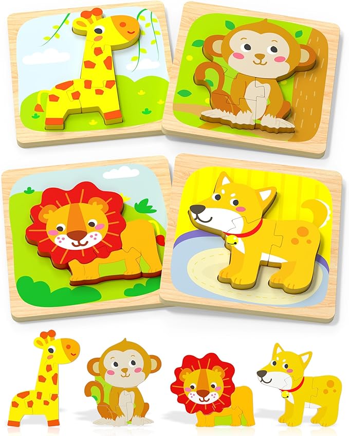 Wooden Puzzles Toddler Toys for 1 2 3 Year Old Boy Girl, 4 Packs Animal Toddler Puzzles Preschool Educational Learning Montessori Toys Age 1-3, 2-4 Christmas Birthday Gifts