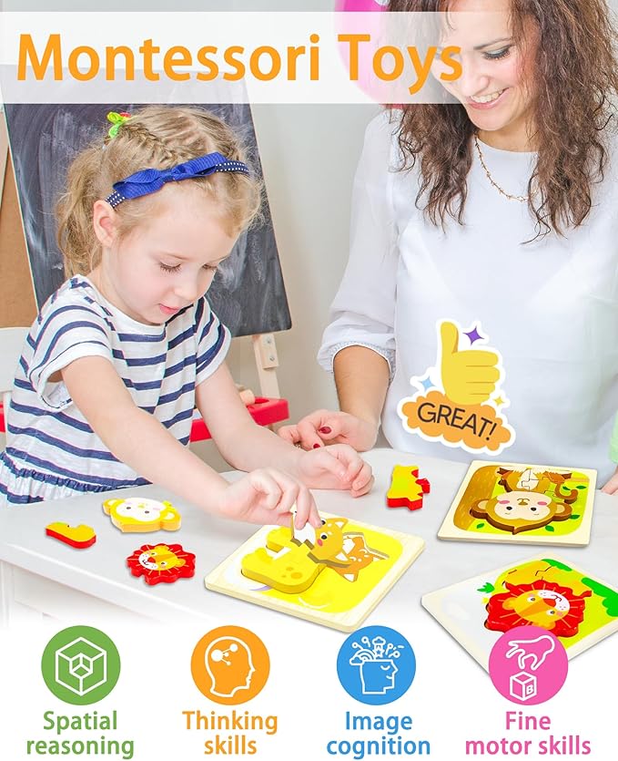 • IDEAL TODDLER GIFTS FOR BOYS AND GIRLS: Whether it's for fun parent-child time or a friendly kid's friendship social time, Christmas gifts, Easter gifts or birthday gifts for 1 2 3 year old girls and boys, the wooden puzzles all would be a good choice.