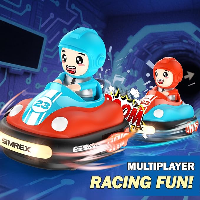 - 【INNOVATIVE BUMPER CAR FUN EXPERIENCE】: The new bumper car design brings a new way of playing to traditional remote control cars. When the remote control bumper car is hit from the side, the puppet will pop up and make realistic sound effects, adding fun and interactivity to the game.Children can speed up and enjoy the fun of chasing and collision brought by remote control bumper cars