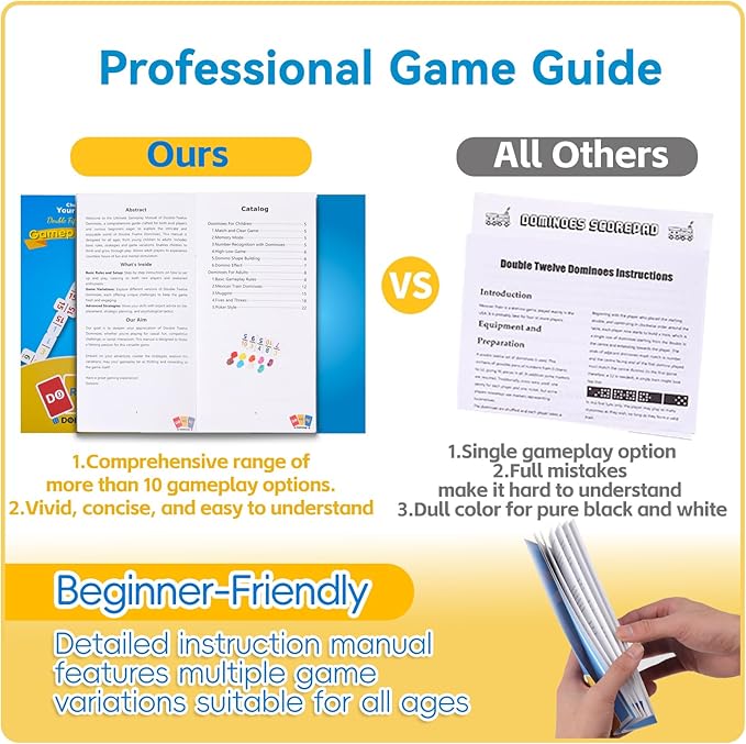 • Beginner-Friendly: Our Mexican Train Dominoes set comes with a well-designed manual, making it easy for newcomers to learn while offering advanced strategies for experienced players