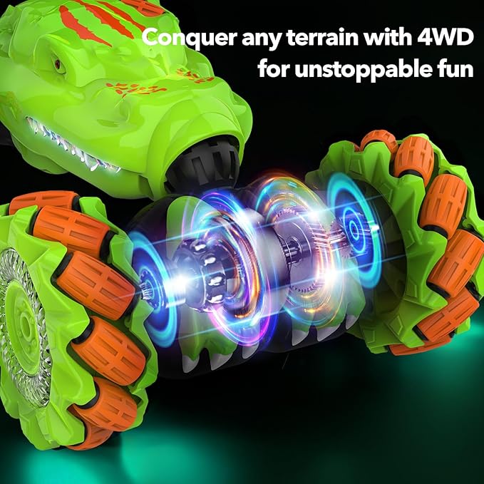 • Gesture Control Magic: Watch this dino-inspired RC car come to life with a wave of your hand! Lights, music, and fierce sound effects create an unforgettable adventure. Perfect for kids 6-12!