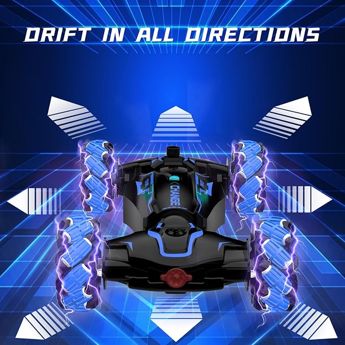 - 【Dynamic Corner Drifting】Introducing the All-Terrain Drift Hand RC Stunt Car, the high-tech 4WD RC Stunt Car that redefines drifting excitement. With its ability to slide in any direction, walk sideways with ease, and spin in full 360-degree rotations accompanied by dazzling lights and thrilling music, this remote control stunt car delivers heart-pumping adventures for kids and adults alike.