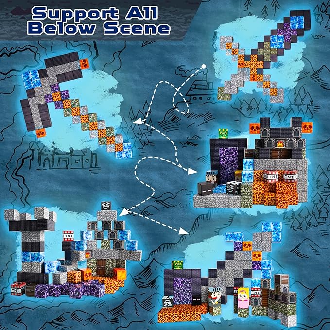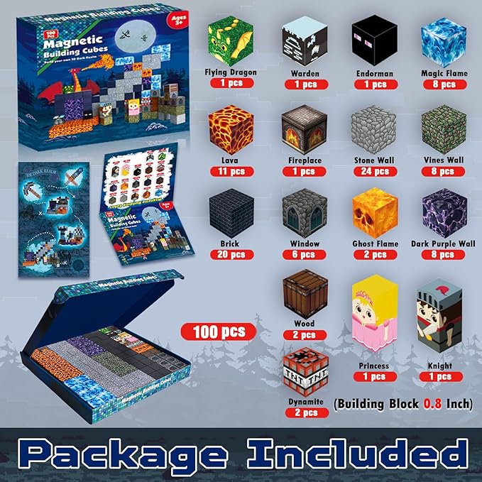 - 【Dark Castle Magnetic Cube Kit】Including 100 magnetic cubes in 16 colors. Idea booklet with the storyline and beautiful patterns, keep them busy in clever ways. GraceDuck magnetic activity cubes are made of high-quality ABS material and crafted with the round edges and the right size. Our magnetic cubes kit with super strong internal magnetic, which is easier for toddlers ages 3+ to stick the cubes together and make builds sturdy. Perfect STEM toys help kids gain a deeper understanding of the structure and learn about magnetic properties!