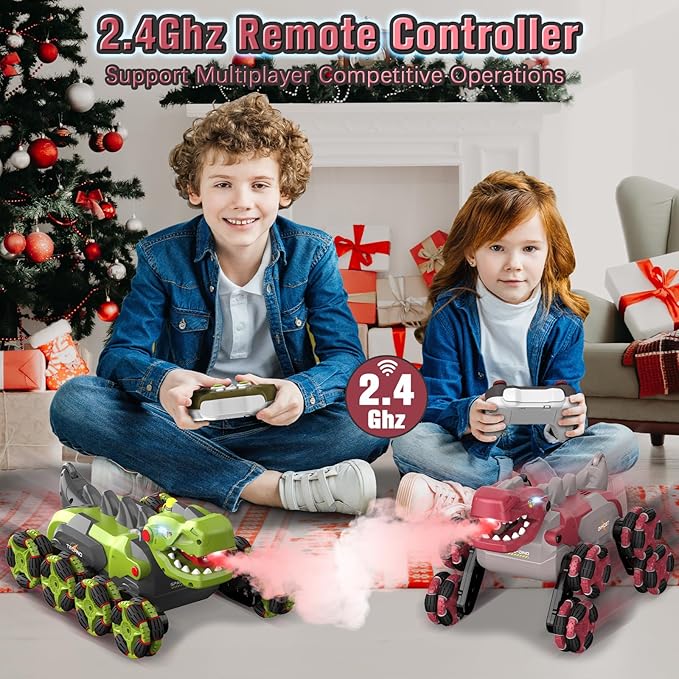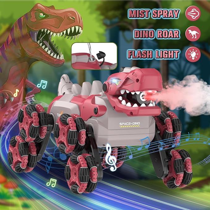 - 【Perform Dazzling Skills】The rc dinosaur car has stunning transformations, flashing lights, realistic dinosaur roar, one click presentation and mist spraying after adding water, giving unprecedented operating experience and unlimited fun to boys and girls. Let them learn while playing
