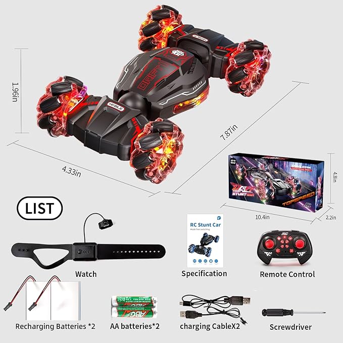 • 【Suitable for All-Terrain】:4WD Gesture Sensing rc stunt car is equipped with powerful motors and crash-resistant tires, allowing it to conquer all terrains - sand, grass, dirt, rocks, and more. Our RC Cars is designed for kids who love adventure,greatly satisfies the exploration and adventure spirit of boys and girls.