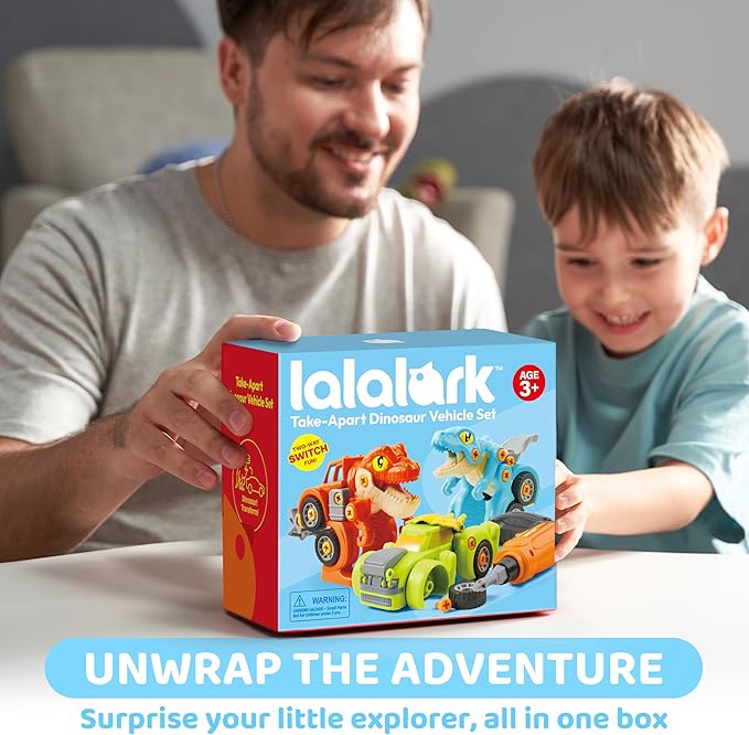 Dinosaur Toys, 3 Pack Take Apart Dinosaur Playset with Electric Drill, Transforming Construction Building Toys, Two-Way Switch, Play Cars for Boys Girls Kids, Christmas Birthday Gifts for Kids