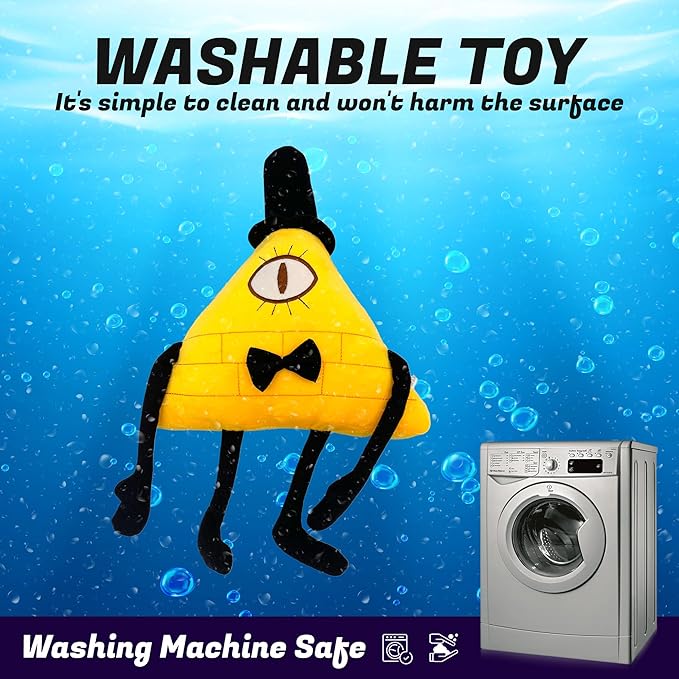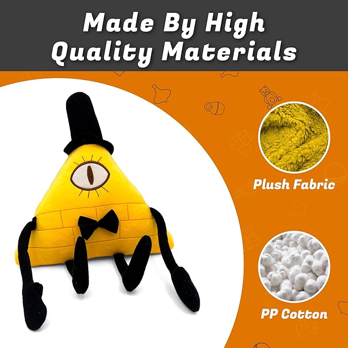 • Ultra-Soft & Durable: Made from premium plush materials that are soft to the touch and built to last. Authentic Design: Features Bill Cipher’s signature details, including his all-seeing eye, bowtie, and top hat.