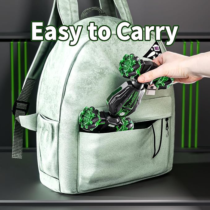 Remote Control Car, 2.4GHz 4WD Gesture Sensing RC Stunt Car, Drift Hand Controlled Twist Cars with Light & Music, Cool Birthday Gifts for Kids Boys Toy Age 6 7 8 9 10 11 12 Years Old(Green)