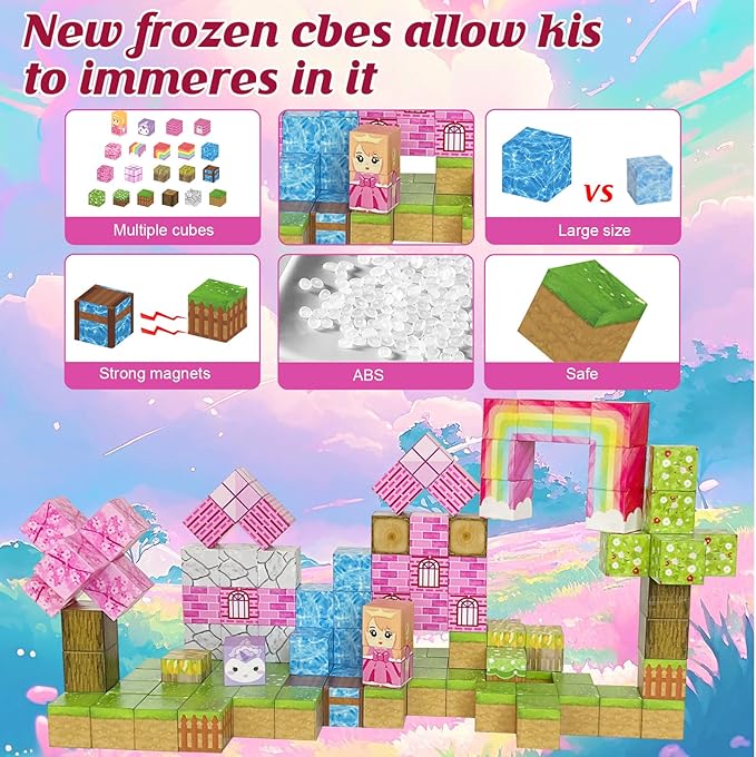 - A VARIETY of FUN MAGNETIC WORLDS: 110 magnetic cubes (20 designs) are included. Kids can choose their favourite dinosaurs, cars and doll toys to add to the fun magnetic worlds. Offers themed worlds ranging from simple to complex to get kids started on fun adventures (Note: Includes Quick Start Idea Book for kids of all ages)!