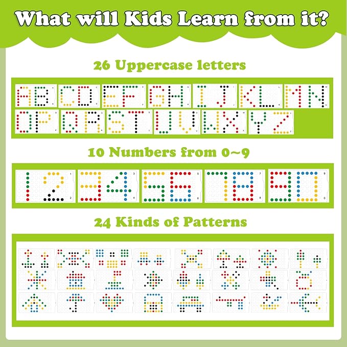 • Easy to Use - Kids easily play the magnetic dot board with 2 modes including free play creation mode or insert a patterned card to start the focus mode. Just place the colorful beads on the 21pcs double-sided cards that effectively captures kid's attention