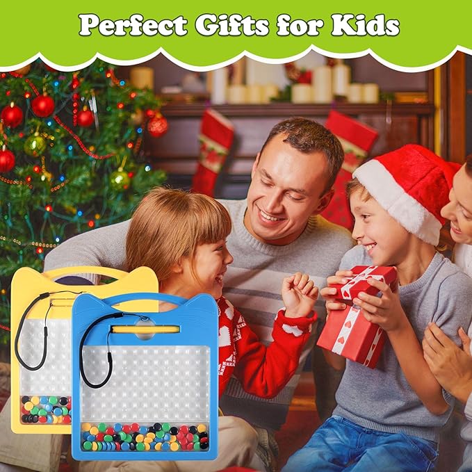• Great Airplane Travel Toys - Easy handling weighing just 0.8 pound with portable size 8" x 8". Take the magnetic dot art toy on the go with handle design. Perfect for car activities or airplane rides, restaurant time that will keep your kids busy on long journey