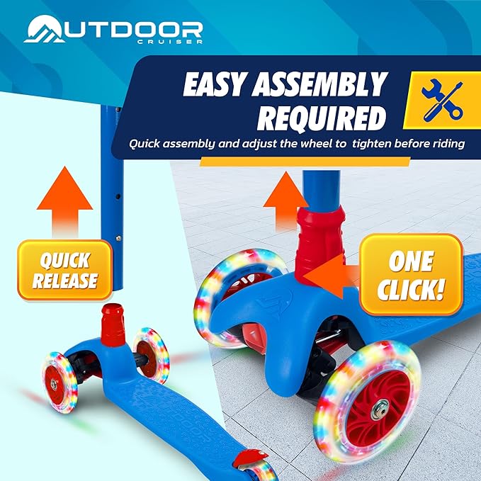 - Parental Ease with Adjustable Wheels: Supplied with a hex wrench, parents can easily tighten and adjust the wheels, ensuring safe and smooth rides every time. We are extremely confident that you and your child will love the easy maneuvering lean-to-steer technology of our multi-wheeled trike-style scooter.