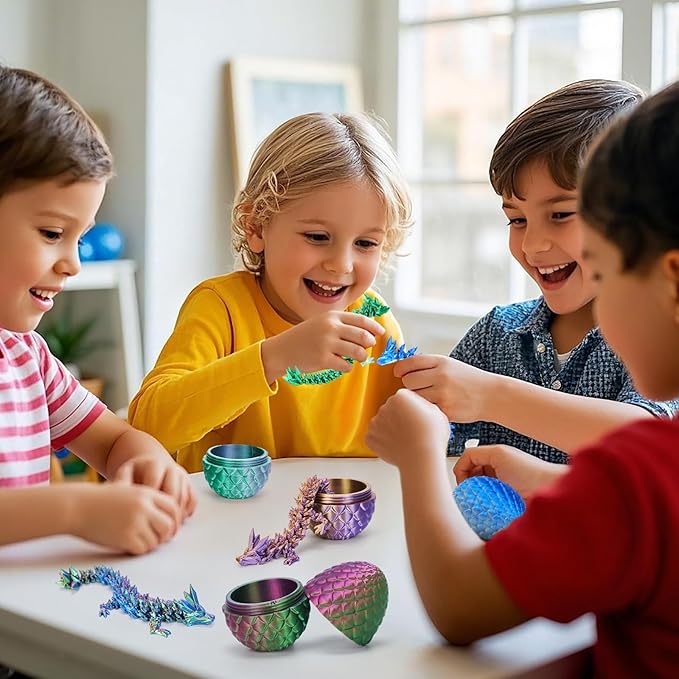 • 🐉🎨【Surprises Inside】Kids will squeal with delight as they crack open these 4 vibrantly colored eggs—each revealing a unique, dazzling dragon friend inside!
