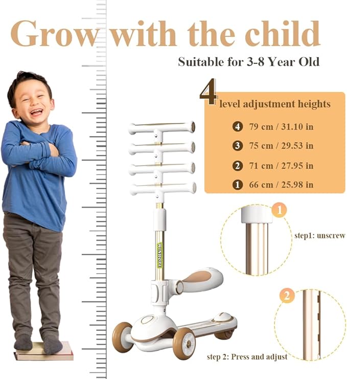 • Stable Three-Wheel Design: Compared to traditional two-wheeled scooters, this three-wheel structure distributes weight more evenly, reducing the risk of tipping. Your child can enjoy a safer ride, mastering their scooter skills with greater ease and confidence