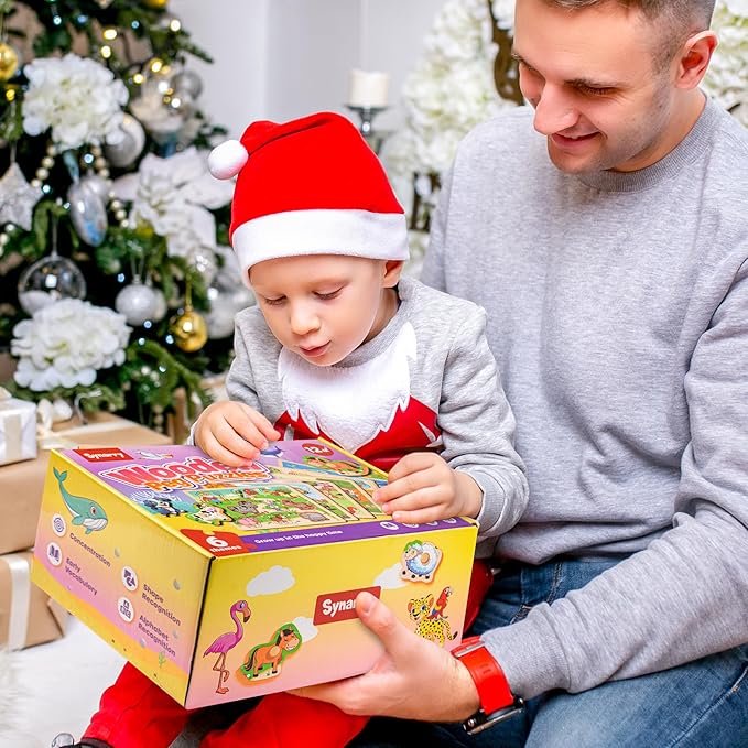 • Educational Puzzle Set: Learning with this set of 6 vibrant scenes and adorable animals! Designed to enhance hand-eye coordination, fine motor skills, problem-solving, memory, and the ability to identify and classify animals. It's the perfect choice for moms and an ideal Christmas present for toddlers.