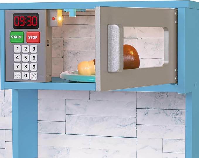 Lil' Jumbl Kids Kitchen Set, Pretend Wooden Play Kitchen, Battery Operated Icemaker & Microwave with Realistic Sound, Pots & Pan Included - Blue