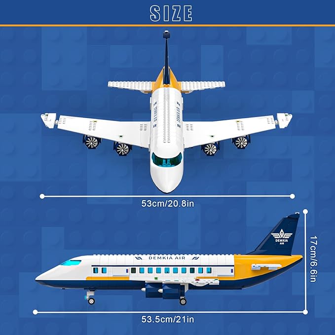- Plenty of Room for Imaginative Play to Develop Kids' Skills --- The STEM toy passenger airliner measures over 6.6 in (17 cm) high, 21 in (53.5 cm) long and 20.8 in (53 cm) wide. Through role-playing and real-life scenarios, this airplane building kit helps children enhance hand-eye coordination, spark imagination, improve spatial awareness, and foster creative thinking.