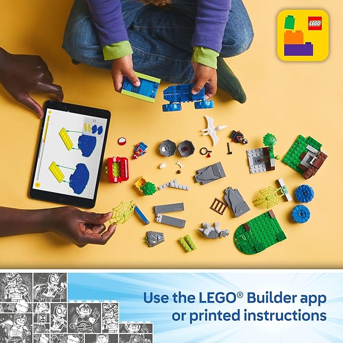 • BUILD-AND-PLAY ADVENTURE TOYS – Creative boys and girls ages 4 and up can enjoy an interactive experience with a hidden dino egg, LEGO Spidey webs to trap villains, and a trigger-operated rockfall