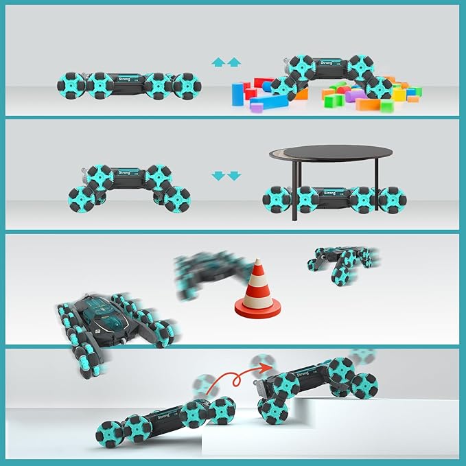 - Unique 360° Stunt RC Car: Built for awe-inspiring stunts, this RC car's unique wheel and arm design lets it drift and spin 360° with ease. By simply raising or lowering the swing arms, kids can switch between various stunts, creating an action-packed adventure. Ideal for boys aged 8-13, this toy promises hours of imaginative play and skillful maneuvers.